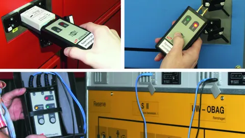 Equipos de seguridad como p. ej. pértigas de maniobra, elementos de bloqueo, detectores de tensión, equipos de puesta a tierra y cortocircuito y placas protectoras aislantes para los trabajos según las cinco reglas de seguridad