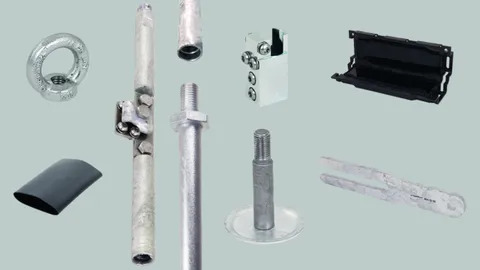 Piquets de terre, bornes de raccordement et accessoires pour la mise à la terre des conducteurs de descente de foudre.